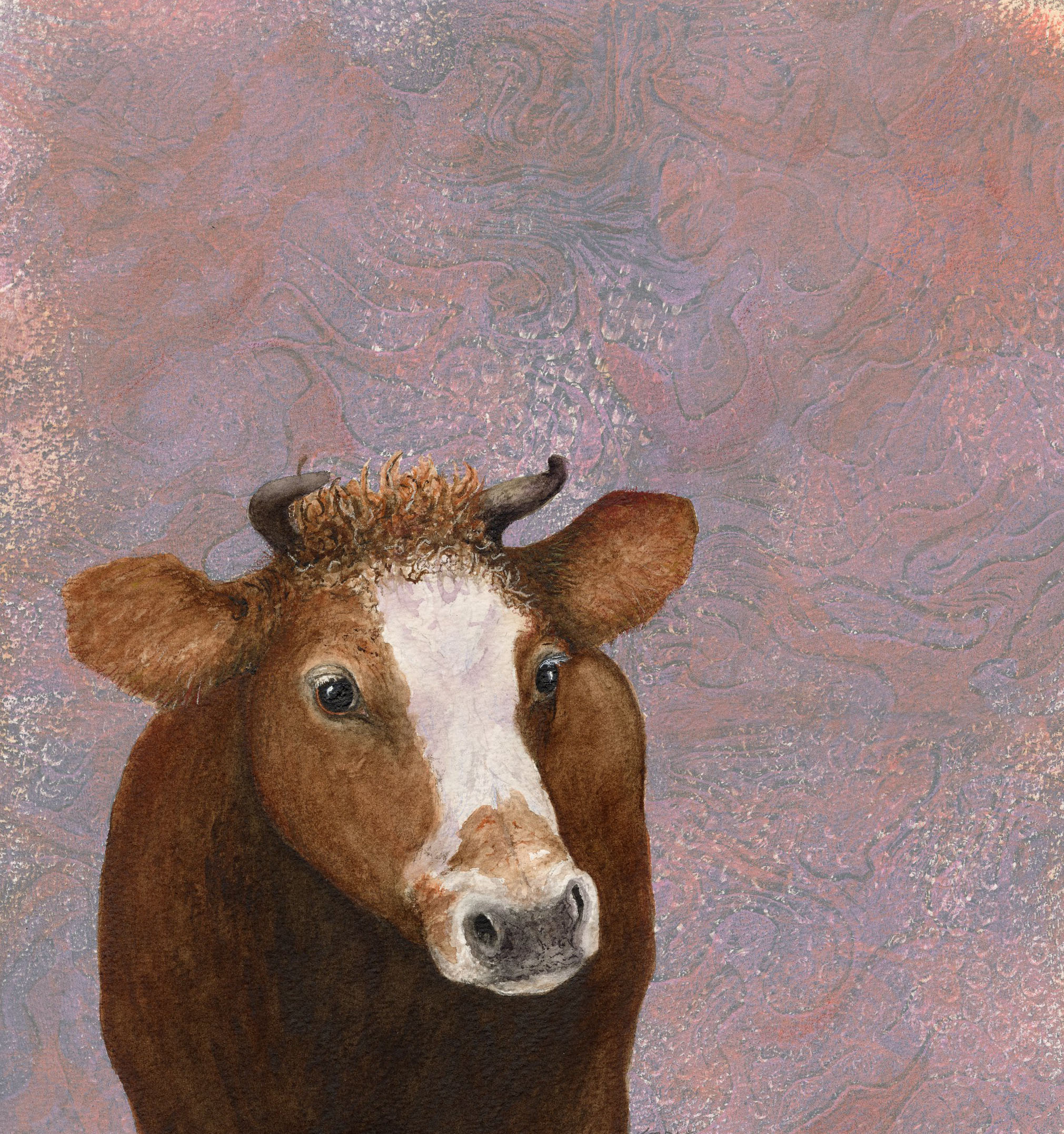 Brown Cow With Pink Blue Background